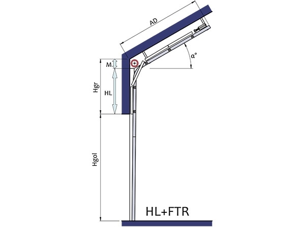 INALTIME : H min = 2500 mm -H max = 6000 mm Usi de garaj sectionale industriale cu sisteme de culisare HL-FTR ( High Lift si Follow The Roof) acolo unde se doreste ca sina de culisare sa mearga vertical,apoi sa fie inclinata dupa forma acoperisului.
