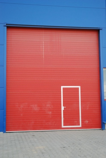 Usi de garaj sectionale industriale cu usa pietonala cu prag lat.