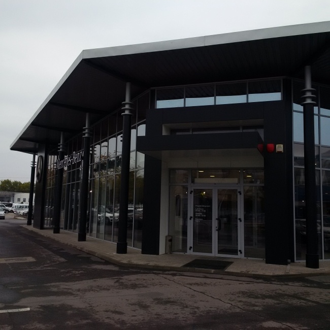 La sediul MERCEDES BUCURESTI, unde este un show-room de prezentare am executat , livrat si montat pereti cortina .